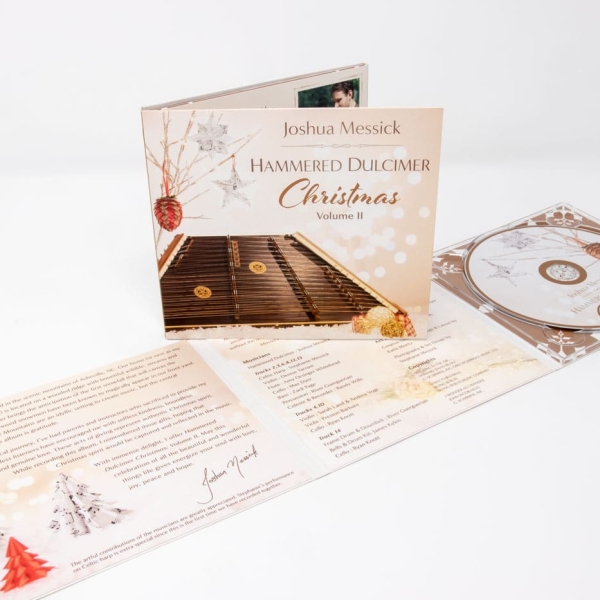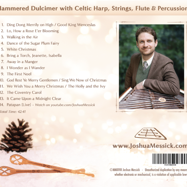 The hammered dulcimer, as usual with Joshua, is impeccable…stylistically pushing the boundaries of the capabilities of this instrument. And what an unexpected pleasure it is to hear his wife, Stephanie, on Celtic harp, particularly on “I Wonder as I Wander.”